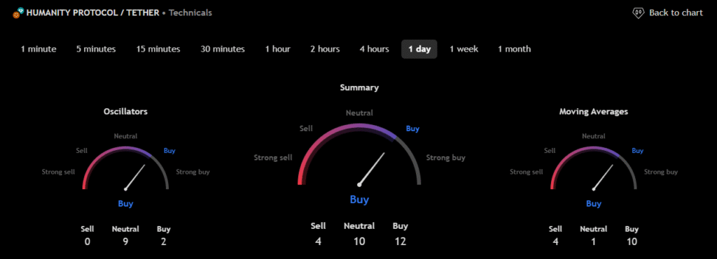 The technical analysis indicators such as Relative Volume (RVOL), Moving Average (MA), and Relative Strength Index (RSI) of Humanity Protocol (H) are shown in the chart below.