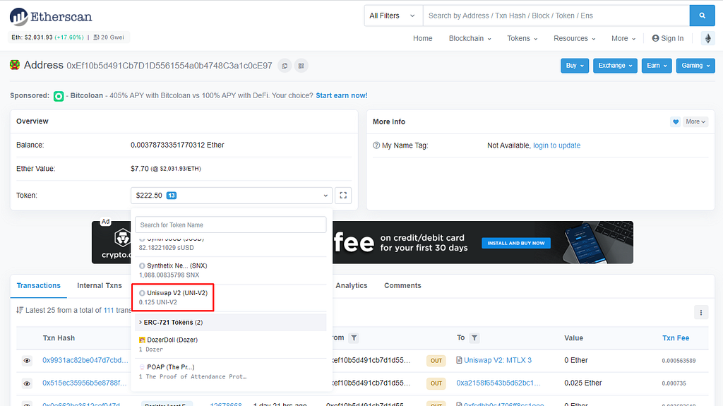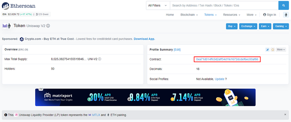 You will be redirected to the Uni V2 LP token contract. Copy the contact address.