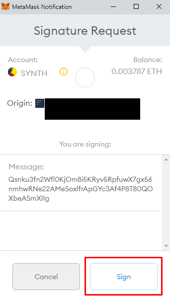 - Your MetaMask wallet will prompt you to sign a transaction;