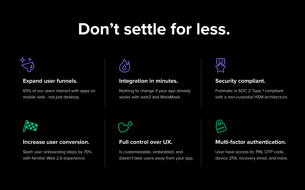 Passwordless authentication with Magic allows Ethereum-based applications to have a completely white-labeled experience, where developers have full control over their user onboarding without having to rely on a mandatory wallet UI (e.g. for transaction confirmation). This increases user conversion rates from 10% (with MetaMask / browser extensions) to over 80%. Magic has been incredibly useful in helping developers build relationships directly with their own end-users, instead of forwarding them to wallet providers, and abstracting away all the complexities related to blockchain from end-users. Some notable integrations with Magic include Foundation, Fairmint, and Cent.