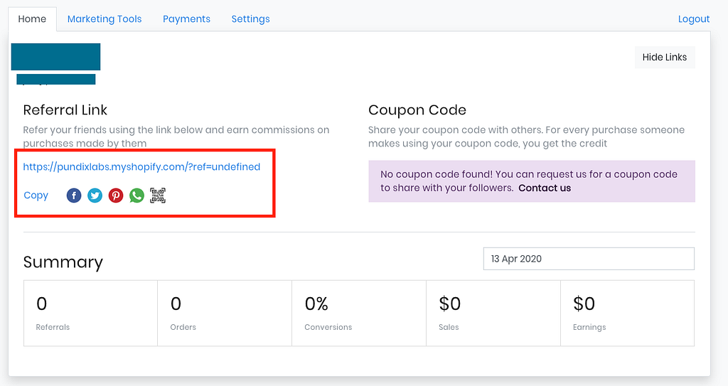 8. Referral link can be customizable. You can also set it up in the Referral Code section.